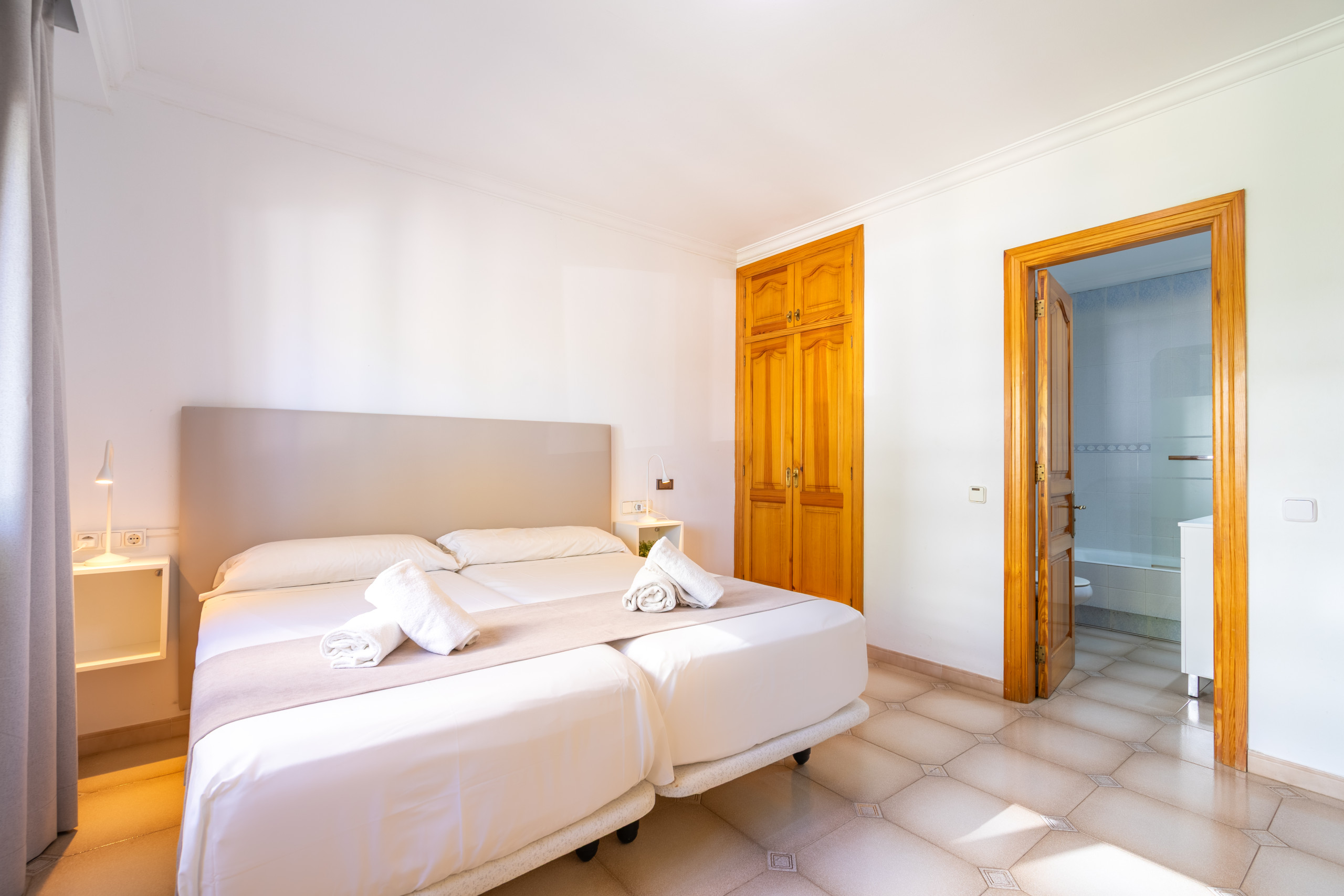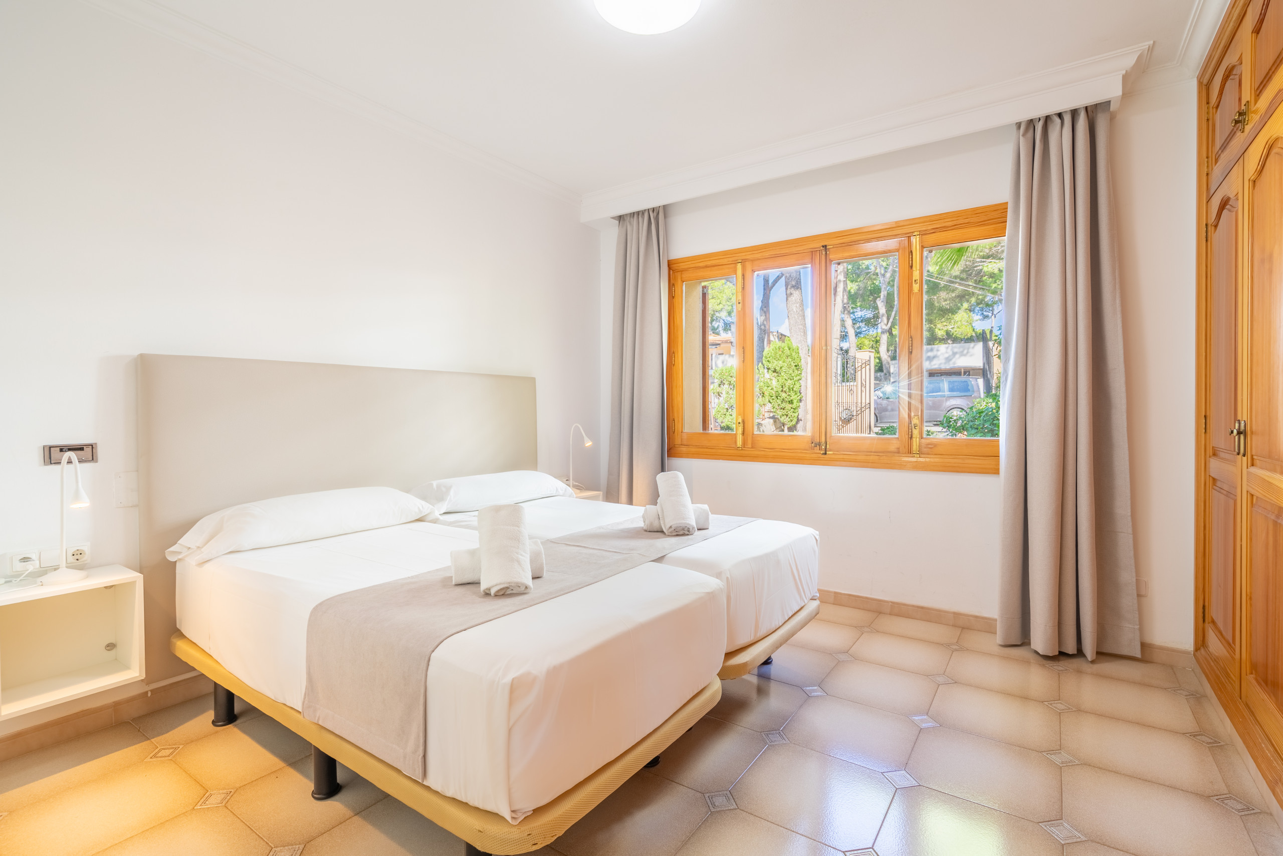 Были с друзьями в первый раз на Балеарских островах, отдыхали во второй декаде октября. Очень хорошая вилла с удобным расположением -5 минут пешком до моря-, рядом транспорт в Пальму, не плохие рестораны и супермаркет в шаговой доступности. Важно отметить, что лучше виллу с 6-ю спальнями с таким расположением, скорее всего не найти. Отличная территория виллы, красивые сосны, пальмы. Можно найти и тень и место чтобы позагарать. Номера удобные только чтобы поспать -именно для сна, а не для чего-то другого-. Немножко жаль, что вода в бассейне в это время года уже была прохладная для купания, но море было теплым и ласковым. В целом нам всё понравилось