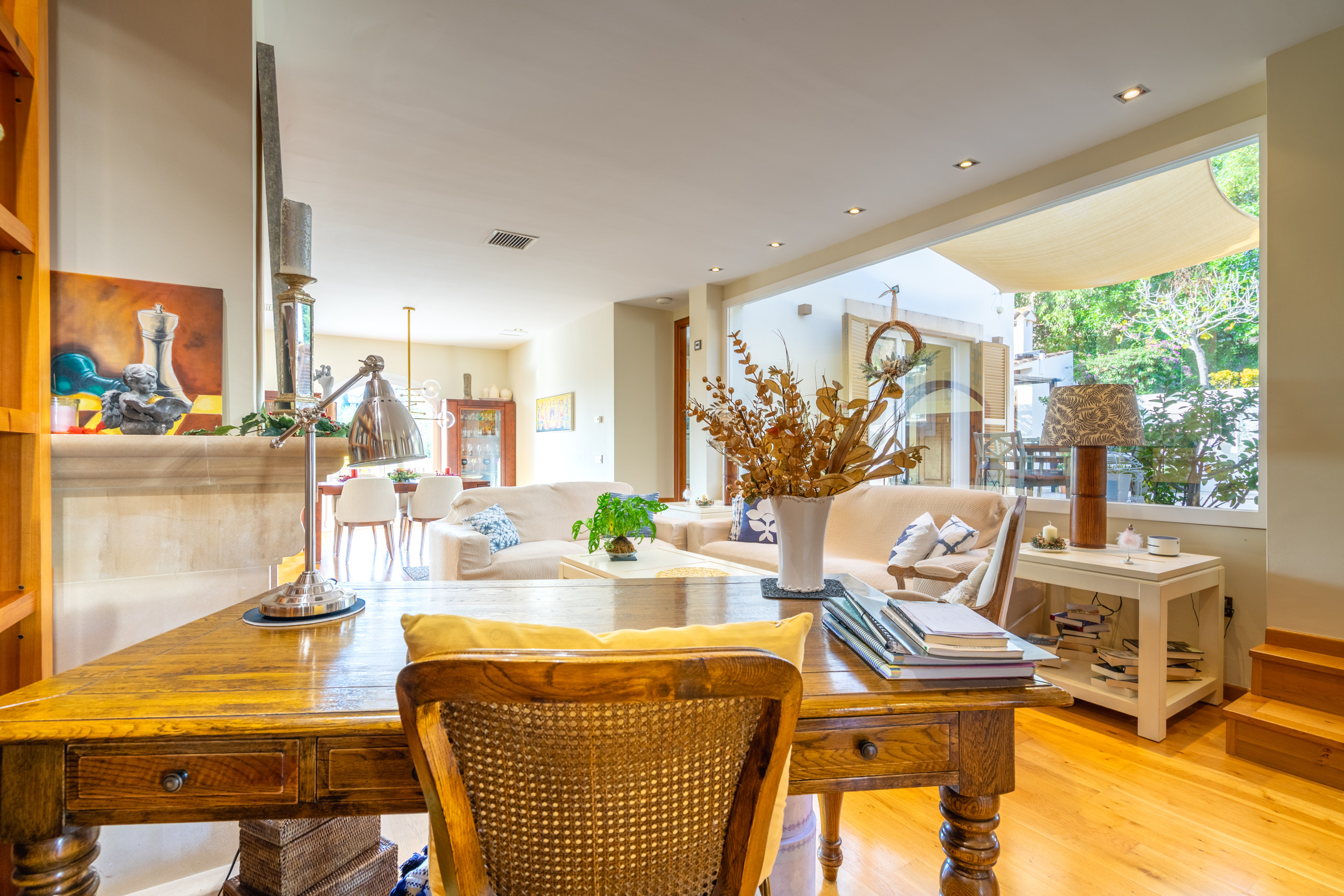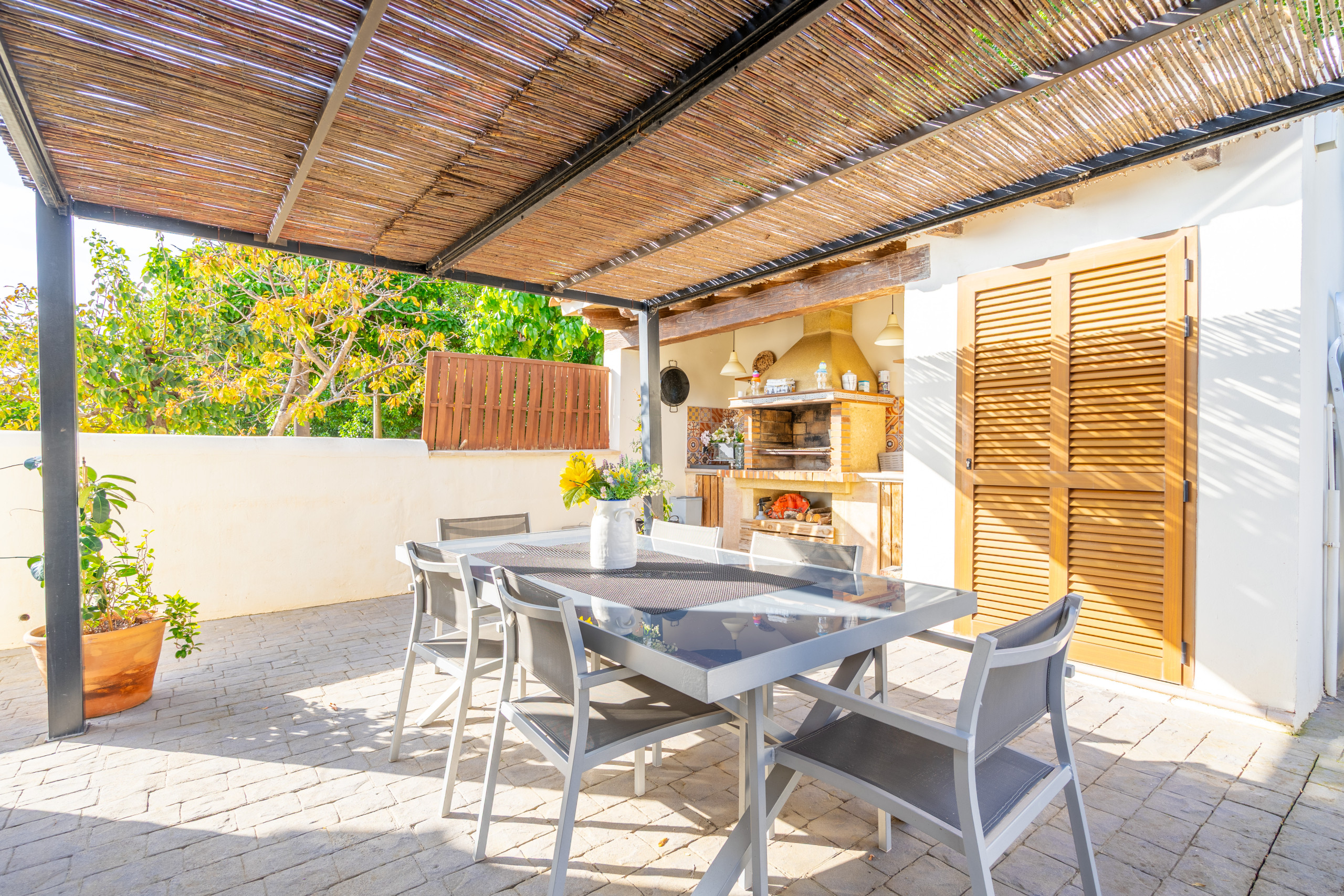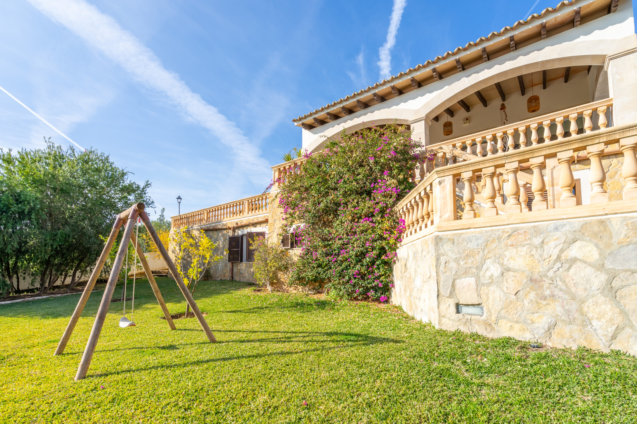 La vivienda cuenta con 5 habitaciones, 4 baños y espacios amplios tanto en el interior como en el exterior. Su gran piscina privada es uno de los protagonistas de la casa: perfecta para refrescarse, relajarse bajo el sol y disfrutar de largas jornadas al aire libre, con vistas a la Serra de Tramuntana.