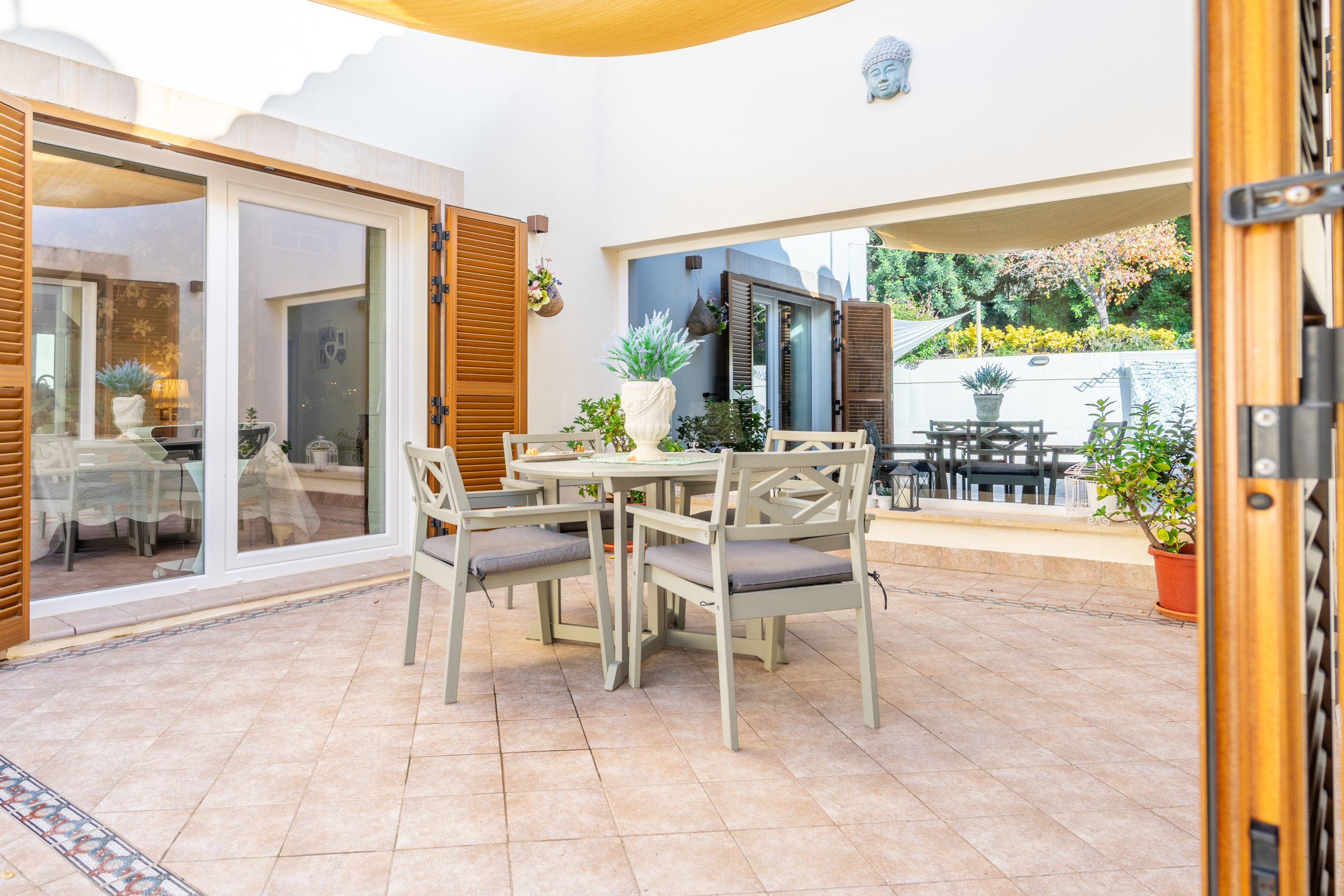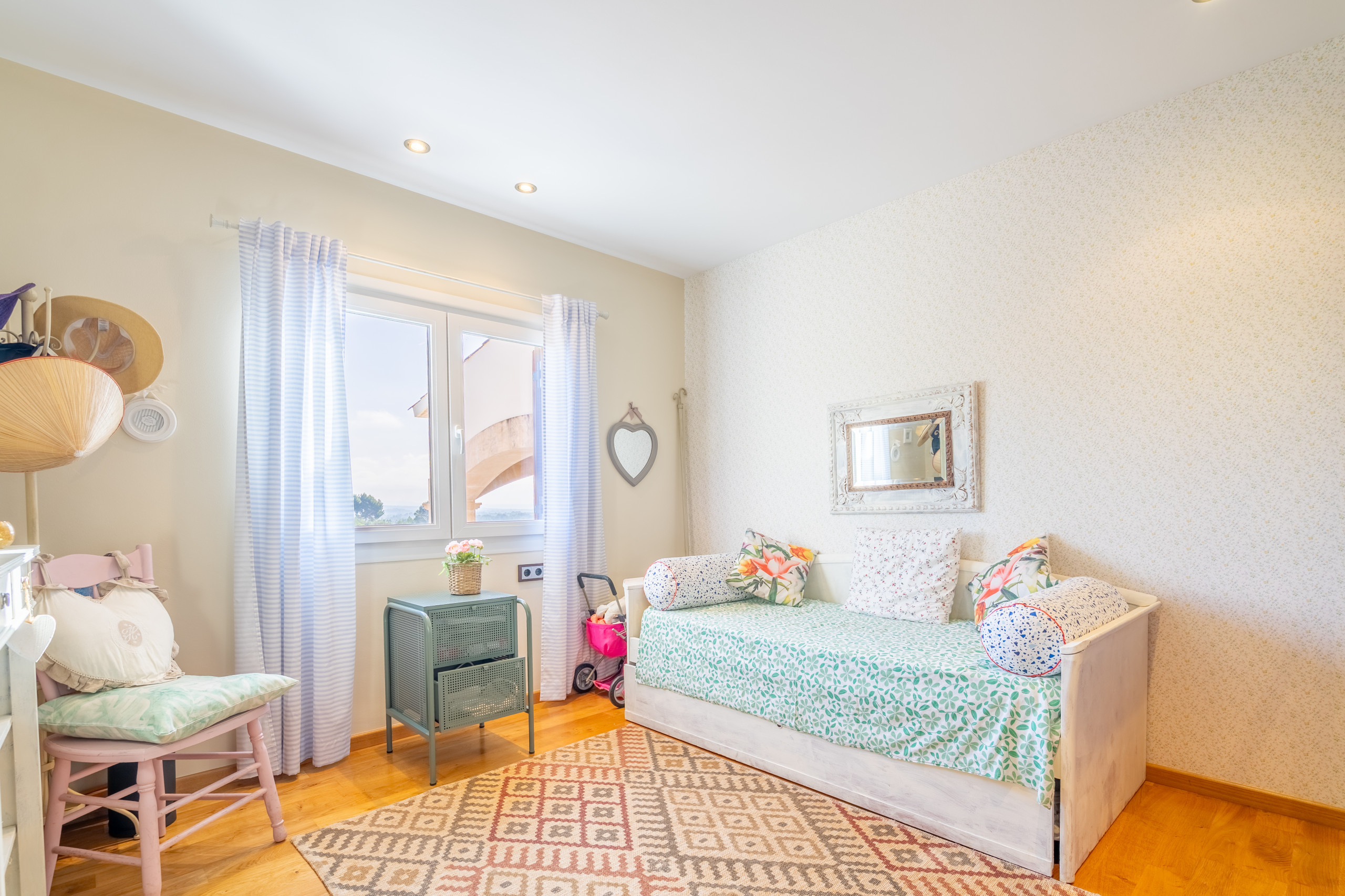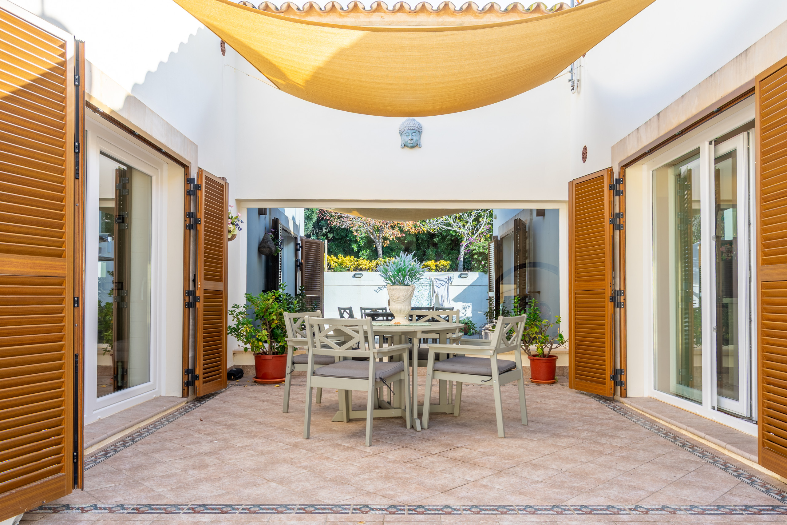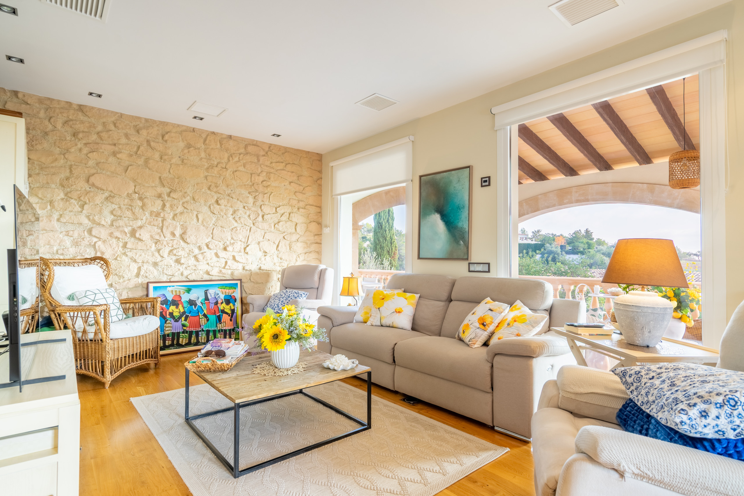 La vivienda cuenta con 5 habitaciones, 4 baños y espacios amplios tanto en el interior como en el exterior. Su gran piscina privada es uno de los protagonistas de la casa: perfecta para refrescarse, relajarse bajo el sol y disfrutar de largas jornadas al aire libre, con vistas a la Serra de Tramuntana.